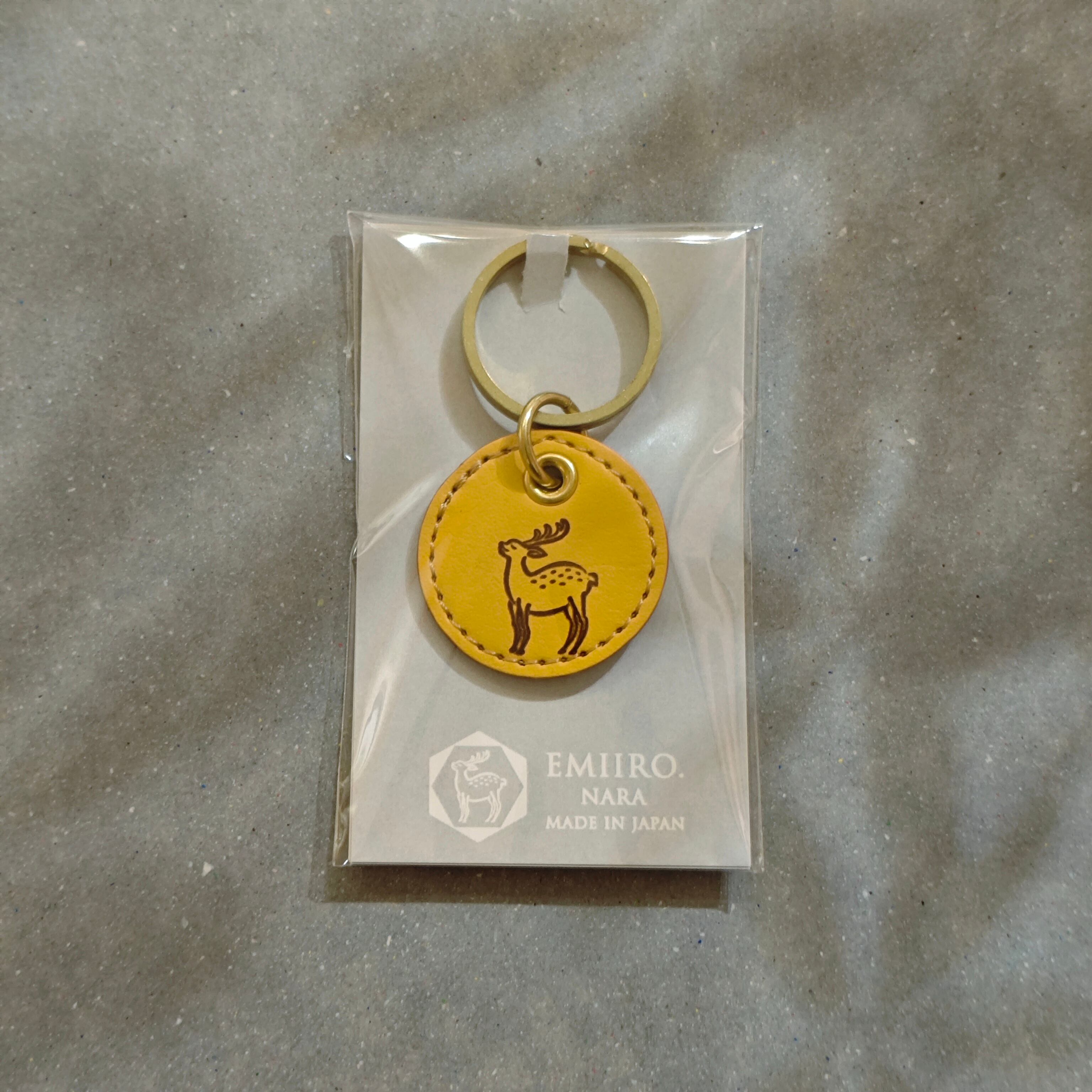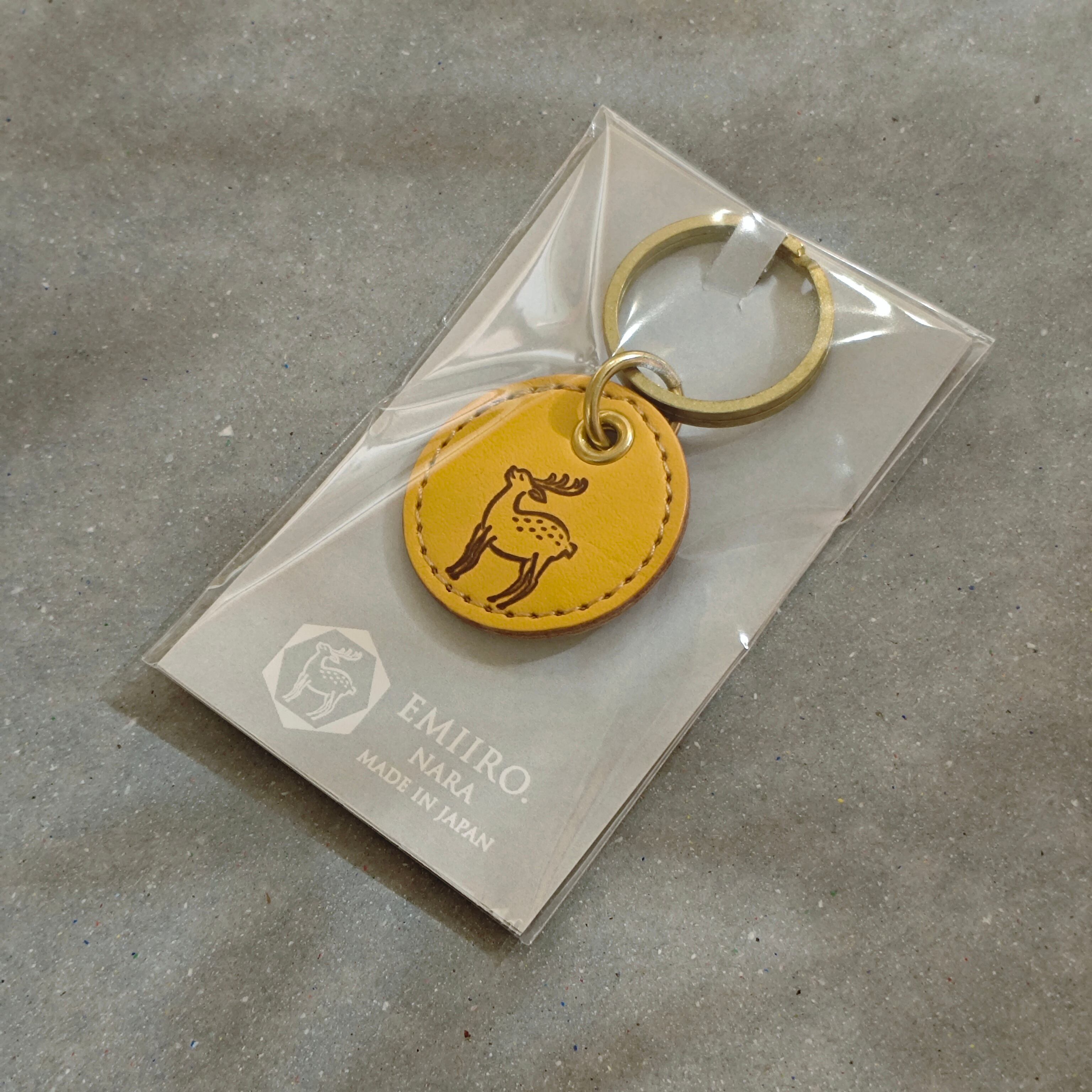鹿チャームのキーリング(黄支子色 / KI KUCHINASHI IRO) 名入れ プレゼント 鹿グッズ