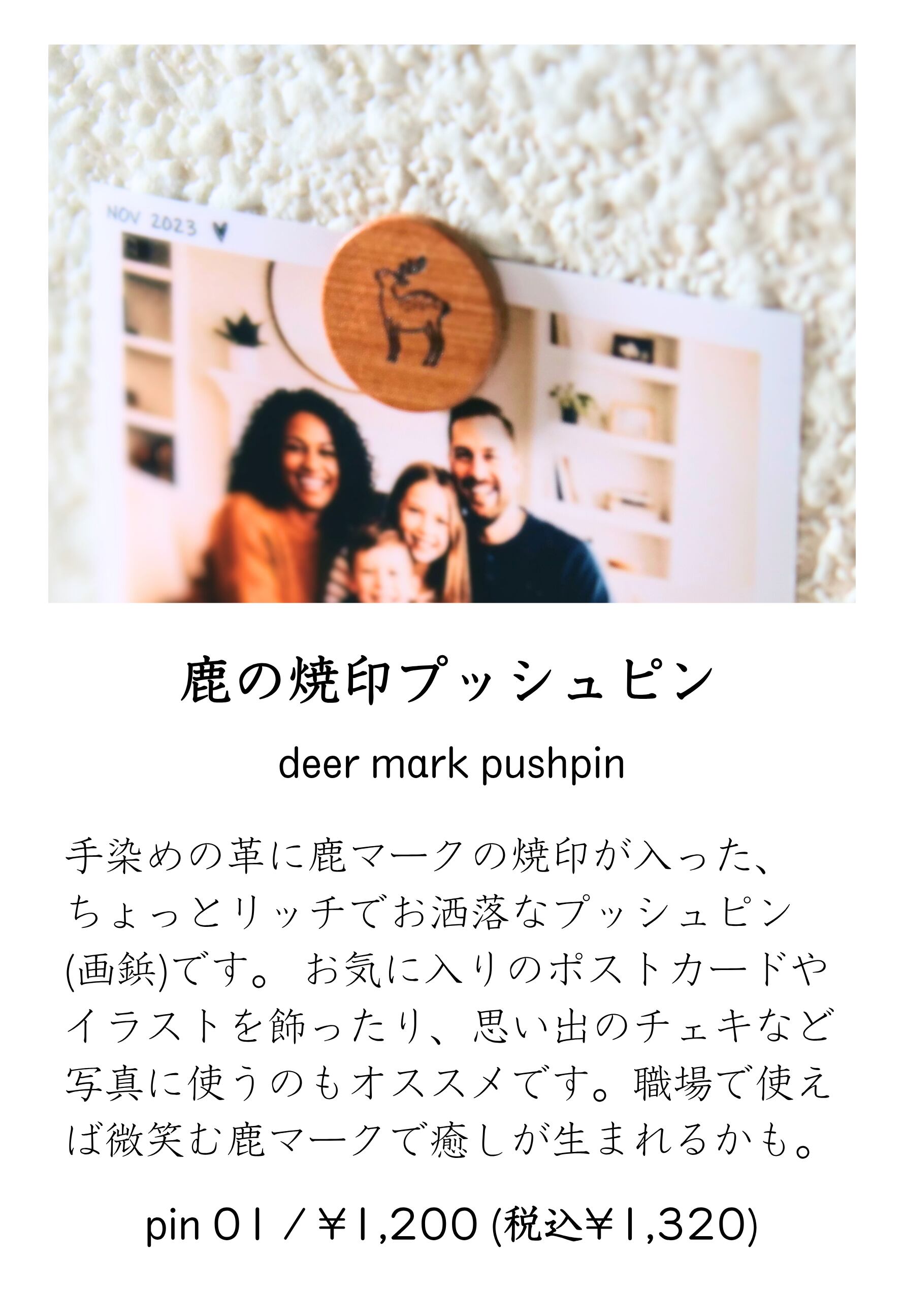 鹿の焼印プッシュピン(桃紅色 / TOUKOU IRO)ギフト ホームグッズ ポスター