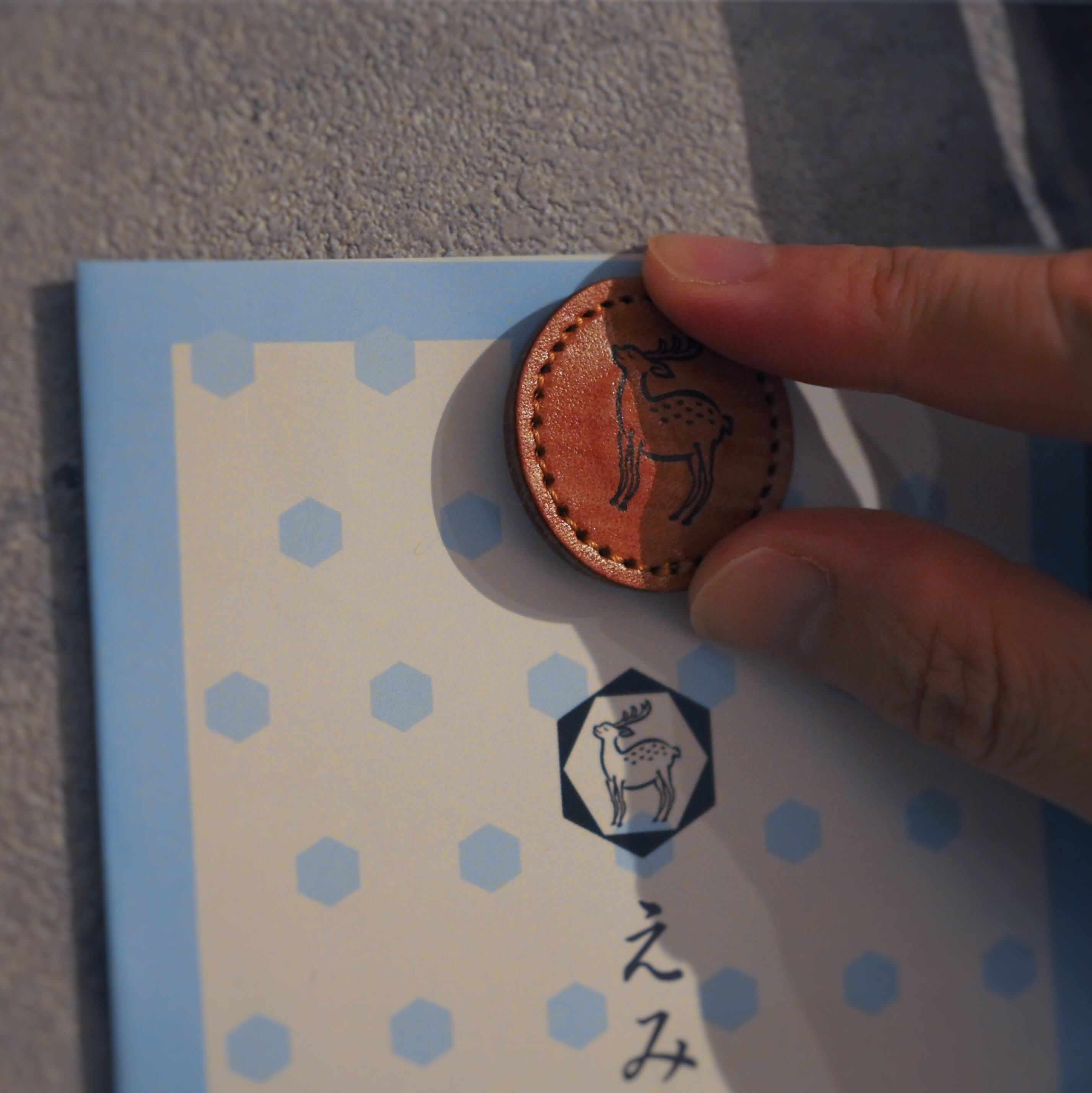 鹿の焼印マグネット「丸」(柿渋染めレザー / KAKISHIBU LEATHER) ギフト プチプラ 鹿