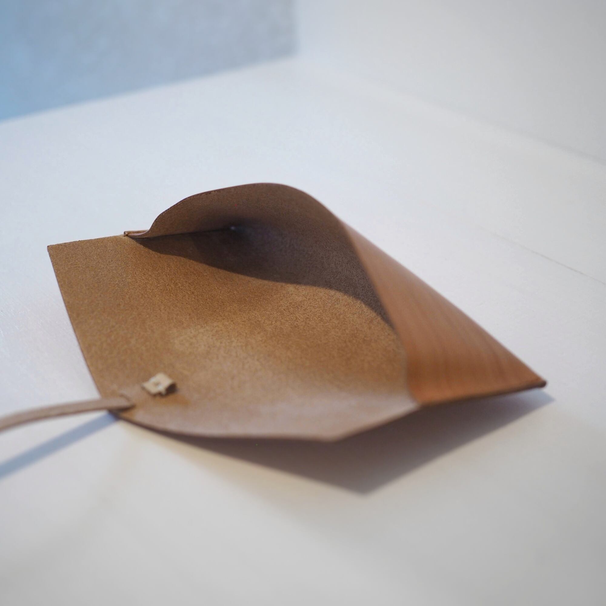 (本体が柿渋染めレザー、紐が無染色のヌメ革)